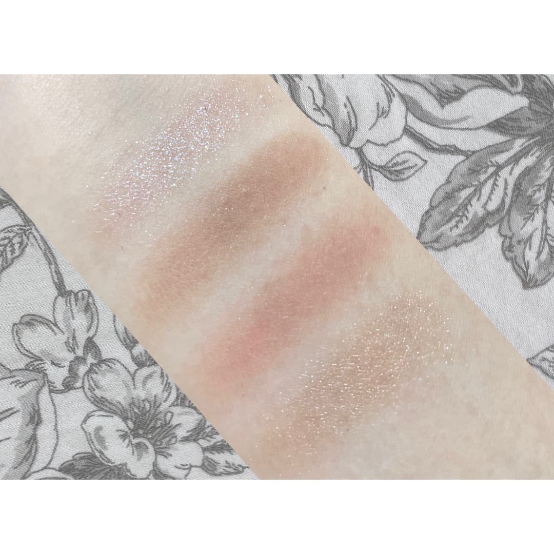 #コスメ購入品 Elégance ヌーヴェル アイズ 34 8/18に新色として発売されていたもの。 実は発売日直後くらいに買っていたのですがタイミングが合わず今更のレビューになってしまいました〜 ヌーヴェルアイズは初めて買ったのですが、粉質が良くラメ感がとっても綺麗! 上品なラメと発色でさすがエレガンスだな〜と感動しました♡ 34は左上のラベンダーカラーに魅了されて買ったのですが、わたしの肌だと左上はほとんど発色せずラメがのる感じ。 右上のブラウンと左下のボルドーがウォームカラーに発色したので赤みブラウンのような仕上がりに。 もっと青み系のカラーを想像していたので、正直思ってた発色と違うな〜と思ったのですが、まあこれはこれでブラウン系のメイクがしたいときに使いやすそうなカラーではあるかな〜と思います。