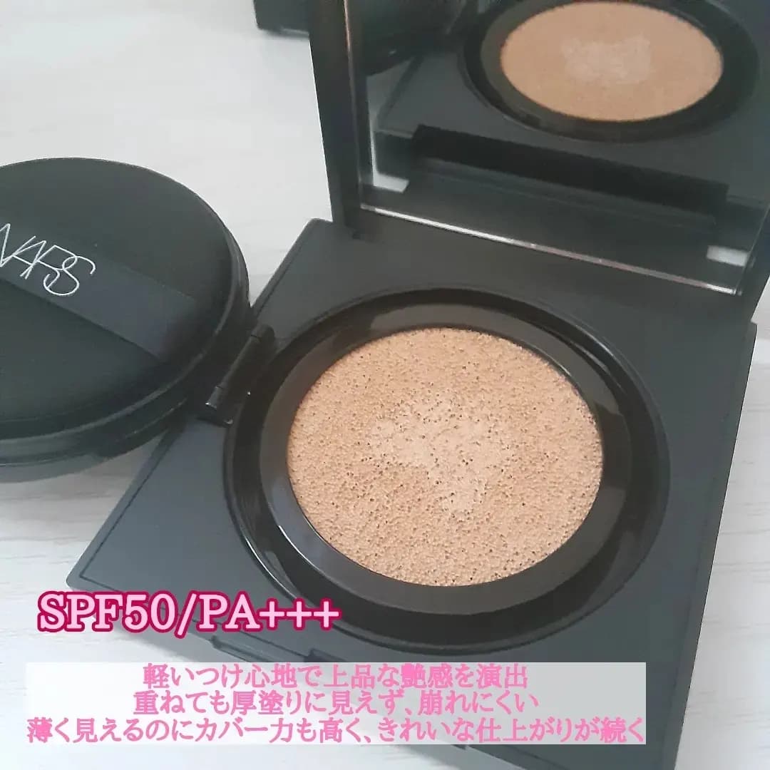 「NARS ナチュラルラディアント ロングウェア クッションファンデーション」 2019年に発売されたものだから マスク対策用にってわけではないとおもうけど、クッションファンデーションの特有の艶感は残しながらカバー力と崩れにくさを兼ね備えたファンデーション👌 軽い仕上がりなのに、気になる毛穴や肌のくすみはカバーして、 暑い夏でも皮脂くずれしにくく、 夕方マスクをはずしても朝メイクしたと変わらない艶感、 嬉しかったのがマスクにファンデーションが、ほぼうつってなかったことと、毎回ファンデーションの、落ちが気になっていた目尻の小じわ。 これがなかったこと! 少量で伸びもよくカバーしてくれるからわたしは重ねなくてもよかったぐらい‼️ 長く愛されるコスメにはそれなりのよさがあるってことですね❤️