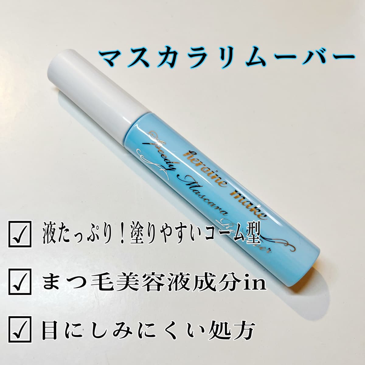 ヒロインメイク様より商品提供していただきました。 ヒロインメイク スピーディーマスカラ リムーバー 現品 ¥940(税込) プレゼントキャンペーンでサンプル品を 今回ご縁がありましていただきました。 気になっていた商品なのでとても嬉しいです! ありがとうございます。 《特徴》 強力マスカラもすご落ち!マスカラリムーバー 塗るだけ!強力マスカラをこすらず落とす ♡まつ毛美容液成分*配合 傷みやすいまつ毛にうるおいを与える *オタネニンジン根エキス ツバキオイル・アーモンドオイル・アルガンオイル ローヤルゼリーエキス ・野バラオイル(すべてエモリエント成分)*** ***カニナバラ果実油 ♡4つのフリー処方 無香料・無着色・イオン性界面活性剤フリー ・アルコールフリー 皮フ刺激テスト済** **すべての方に皮フ刺激が起こらないというわけではありません。 液がたっぷりコーム型で均一に塗ることができそう。 手にスウォッチしますと透明でややとろみのあるテクスチャー。 落ちにくいウォータープルーフマスカラも塗るだけなのに すぐ馴染んで擦らずするんっとオフ。 今まで使用した中で一番馴染むのが早くてすご落ち! しっかり落とさないと目ダニやまつ毛が抜けやすい原因にも繋がるからしっかり落とせるのは魅力的でした🫶❤️ 帰宅してすぐメイクを落としたい時にとっても便利! これはリピートしたいなぁ! #モニター