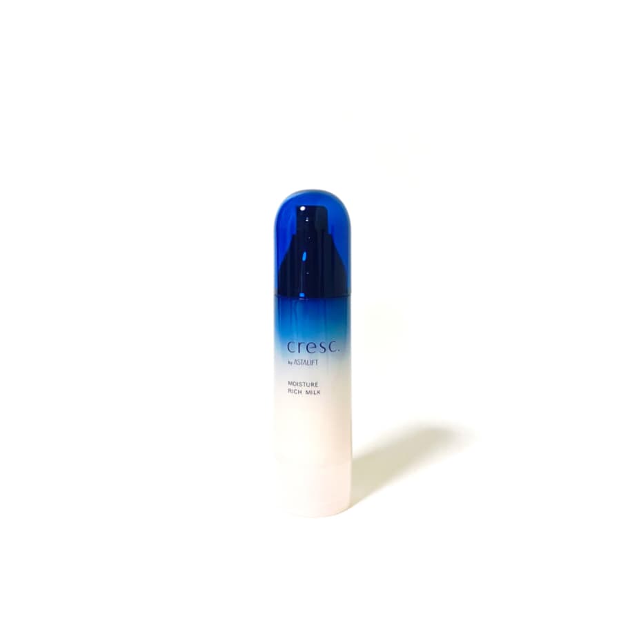 cresc. by ASTALIFT モイスチュア リッチミルク 花粉の時期や体調の変化によって影響が出てしまう私の肌……。 cresc. by ASTALIFTは、そんなゆらぎ肌、きまぐれ敏感肌さんにおすすめしたい商品です! 乾燥・敏感肌に不足しがちなセラミド*をナノ化してたっぷり配合! セラミドが不足していると肌の機能が十分に発揮されず、ゆらぎやすい状態になるんだとか…。 無香料でにおいも気にならないし、アルコールフリーなのも嬉しいポイント! たったの2ステップでスキンケアができるので簡単でした。 ポンプタイプだから必要量を出しやすい! 。゜モイスチュアリッチミルク かためのクリーム状乳液。伸びもよく、塗った後のべたつきも気にならない!朝のメイク前にも、夜のケアにもおすすめです。 透明感のある見た目が好きすぎて、青のグラデーションが綺麗すぎて、見ているだけで心が上がる、素敵な相棒が見つかった気がします♡ *セラミドEOP、セラミドNP、セラミドAP(整肌成分)
