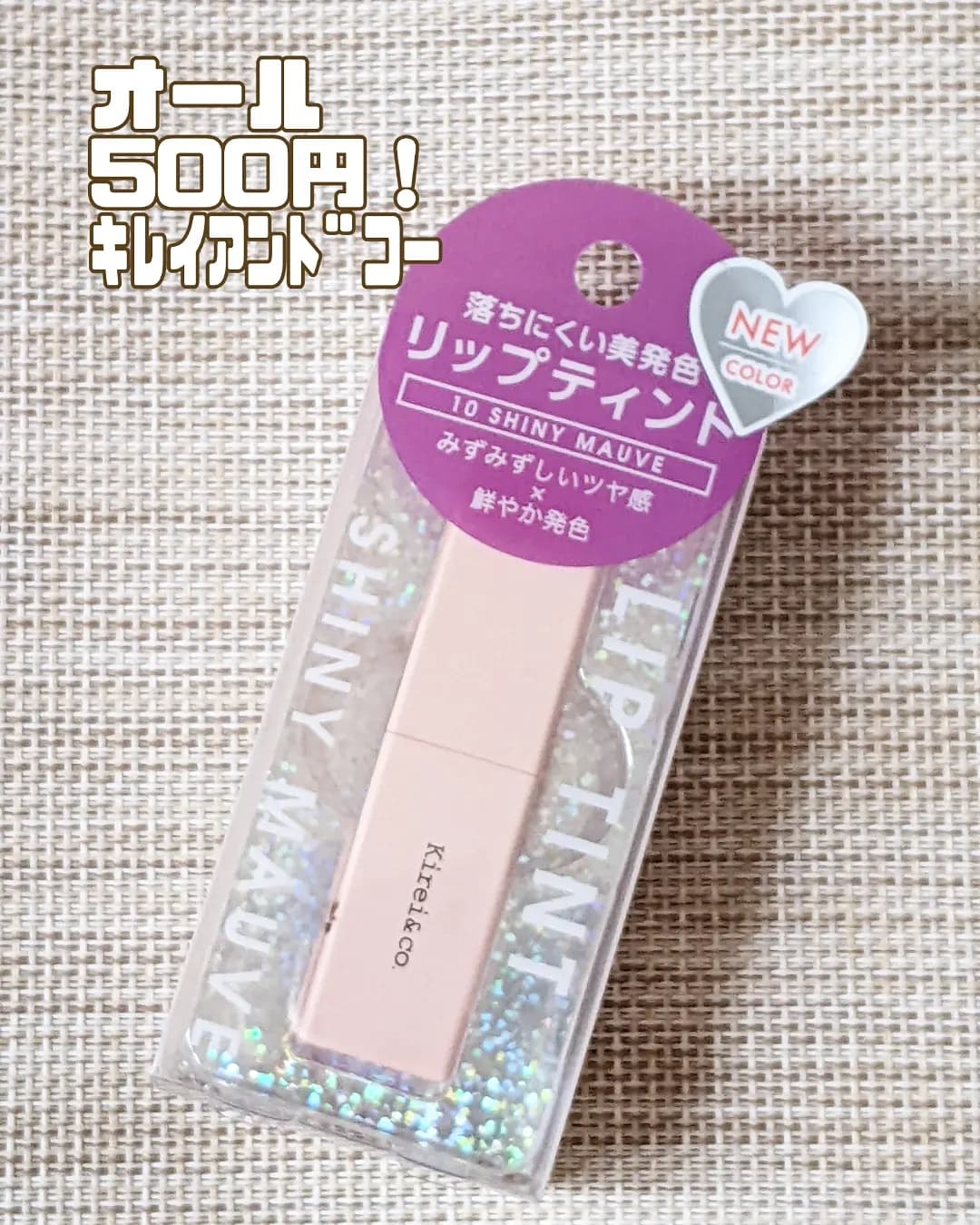 #Kirei&co. #リップティント 10 シャイニーモーヴ 全商品が500円 【税込、550円】のキレコ✨ このティントは ツヤ感のある仕上がりの リップティントで💄 発色も良く ティッシュOFFをしても 色残りましす! シャイニーモーヴは 偏光ラメ入りで 角度によって👄が キラキラ✨として 綺麗な仕上がりになります! 500円【税込、550円】と プチプラで他にもカラーが 沢山 出ているので自分の好みの カラーが見つかると 思います😊 塗りやすいのも 凄く良いです💮💯 気になる方は キレイアンドコーのコーナーで チェックして見てください♪ #ティント#プチプラ