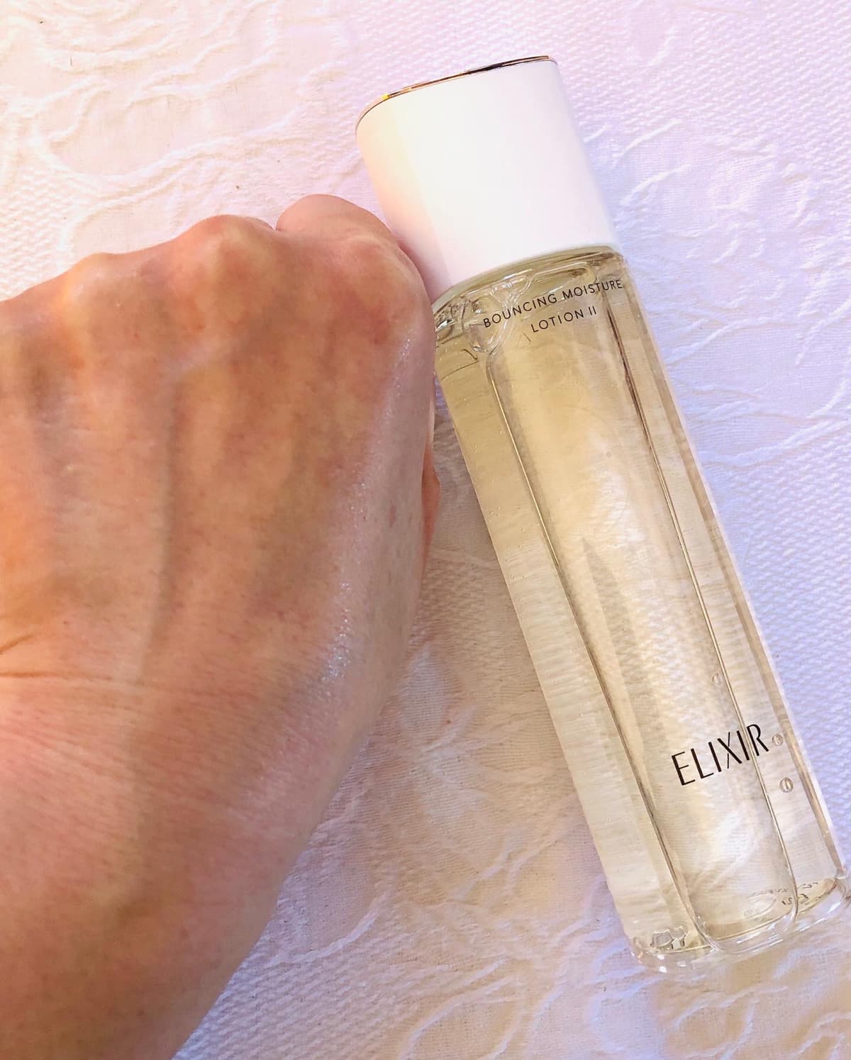 リフトモイスト ローション SP IIは透明感のある綺麗なボトル、テクスチャはややトロミがあり肌にしっかり馴染む感じがあります、さっぱりとしたアクアフローラルの香り、エリクシールのシリーズは大体ちょっと香りが強く気がしますが、イヤというほどではありません