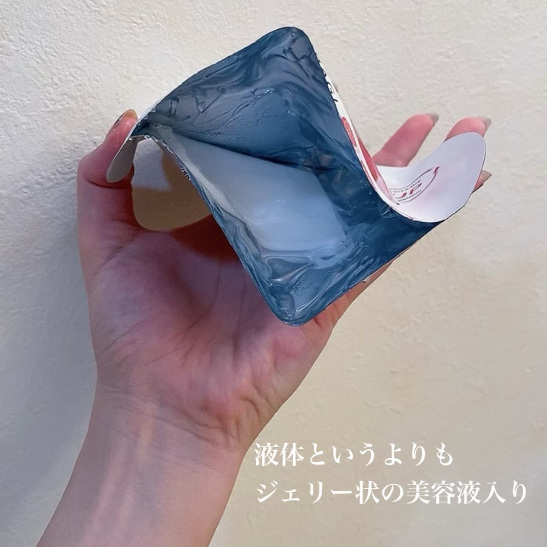 【商品の特徴】美容液というよりもジェリー 【使用感】かなりしっとり 【良い点】保湿力が高い 【気になる点】リフトしない 【おすすめの使い方】夜ゆっくりできるときに 【こんな人におすすめ!】乾燥肌さん 【総評】下記詳細 ********************** * … * … * … * …* … * 金額ですが、Lulucosでは2,200円表記だったのですが、楽天の公式だと10枚入、1,600円+送料690円なので大体こんなもんかな? 肌悩みに合わせて7種類あるようで、好きなタイプを選べるのが良いポイント🫶 1枚ずつの個包装なので、お泊まりや旅行にもぴったりですよね。 今回私が使ったのは、リフティングタイプ。 アデノシンやビタミンコンプレックス、ナイアシンアミドなどが含まれていて、乾燥や弾力不足が気になる人におすすめ。 肌刺激テスト済なので、敏感肌さんにも安心です👌 10枚2,200円とプチプラまではいかないけども、ジェリーが肌に心地よかったので、何種類か混ぜて販売してたらいいなーと思いました。 ただ、私にはあまり合わなかったかな?リフティングもいまいちわからなかったのでリピは無いです。