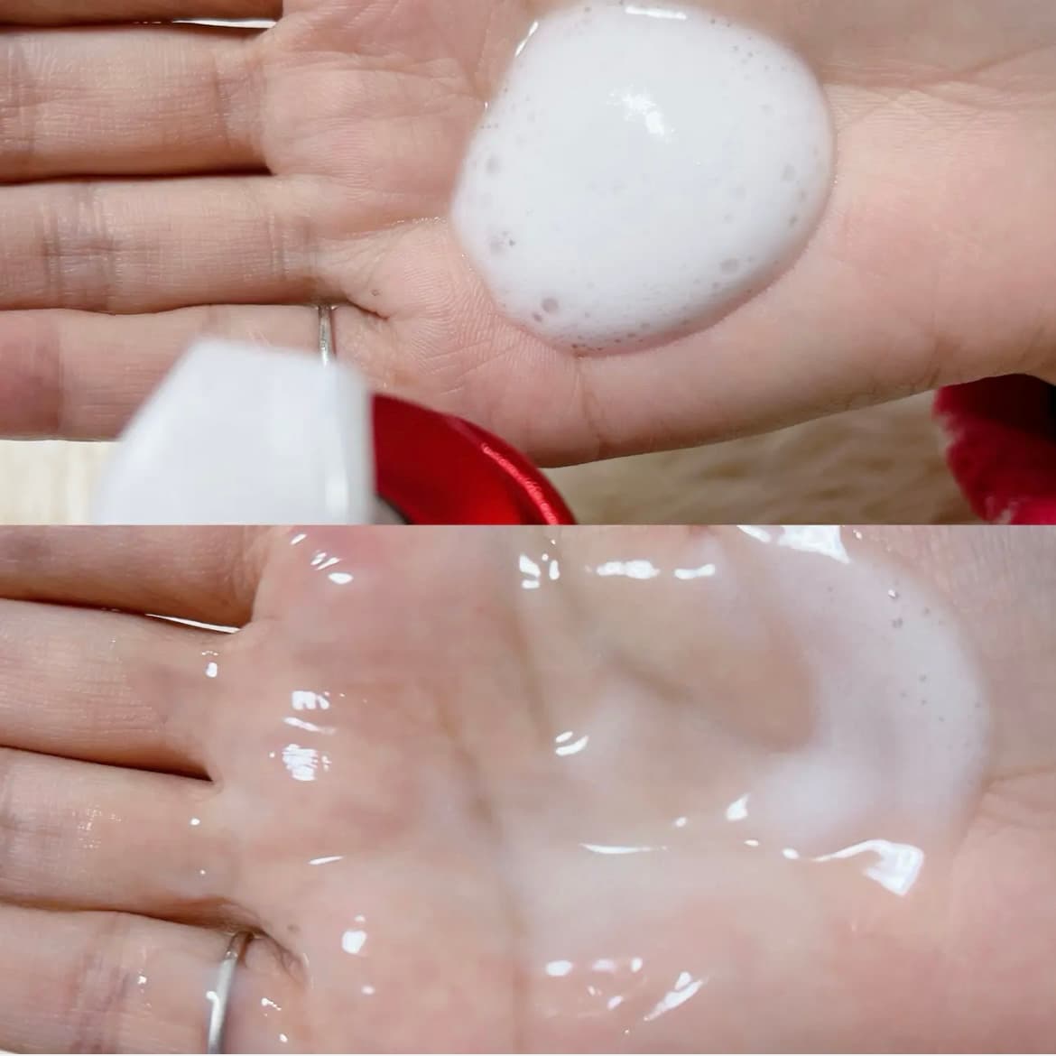 みずみずしく、つややかな美容液に変化しながら次第に肌に馴染みます👌🏻