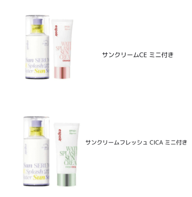 サンクリームフレッシュ CICA ミニ付き(ウォータースプラッシュサンセラム50ml+サンクリームフレッシュCICA30ml): 2,750円