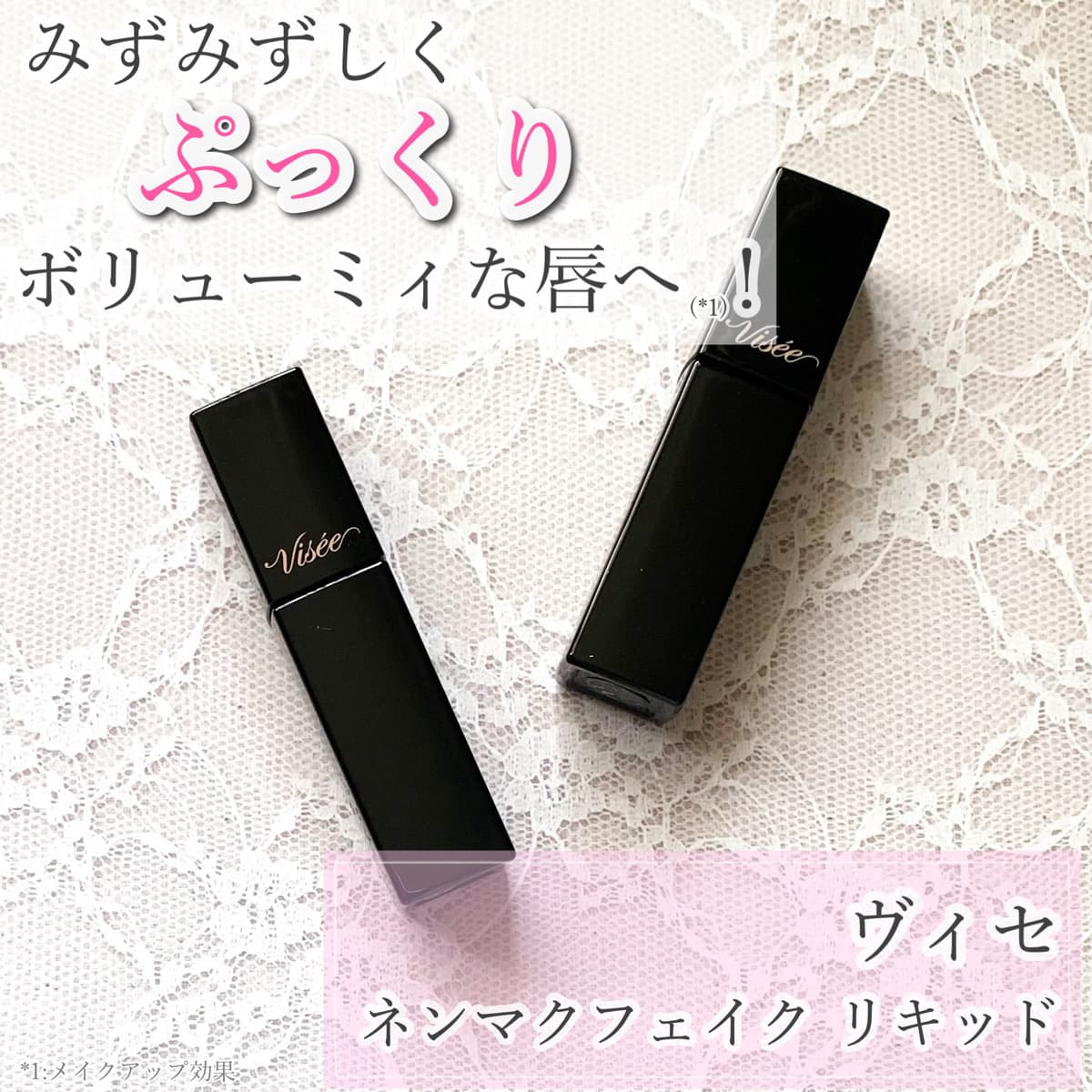 今回は、ヴィセ ネンマクフェイク リキッドを使用してみましたので、レビューしていきます◡̈ ヴィセ ネンマクフェイク リキッドは、みずみずしいのに、メイクアップ効果によりぷっくりボリューミィな唇に仕上がるリキッドルージュ! オイルの中でもツヤ高く、唇への密着性に優れた粘膜色のツヤオイルコート成分を配合しており、唇表面をコーティングし、ぷっくり美しいツヤのある唇を叶えてくれるとのこと☺️ ラスティングティント処方を採用し、染料で唇をじんわりと染めあげてくるそう! 水系ベースの中にオイルを配合し、分散させたオイルインウォーターベースで、ベタつきのないみずみずしいつけ心地を実現しているとのこと✨ ヒアルロン酸・スクワラン(全て保湿)といった美容液成分を配合し、唇へみずみずしいうるおいをあたえ、あれ・乾燥を防いでくれるそう☝️ (*1:メイクアップ効果) 【使用感】 サラッとしたテクスチャーで唇に伸ばしやすいです! BE330はベージュで唇に馴染みやすいカラー◡̈ オフィスメイクにもぴったりなカラーです! PK830はふんわりピンクで血色感のあるお出かけにぴったりなカラー☺️ サッと塗っても色ムラになりにくく使いやすいです🙆‍♀️ 塗布後も軽い仕上がりなのが嬉しい…!